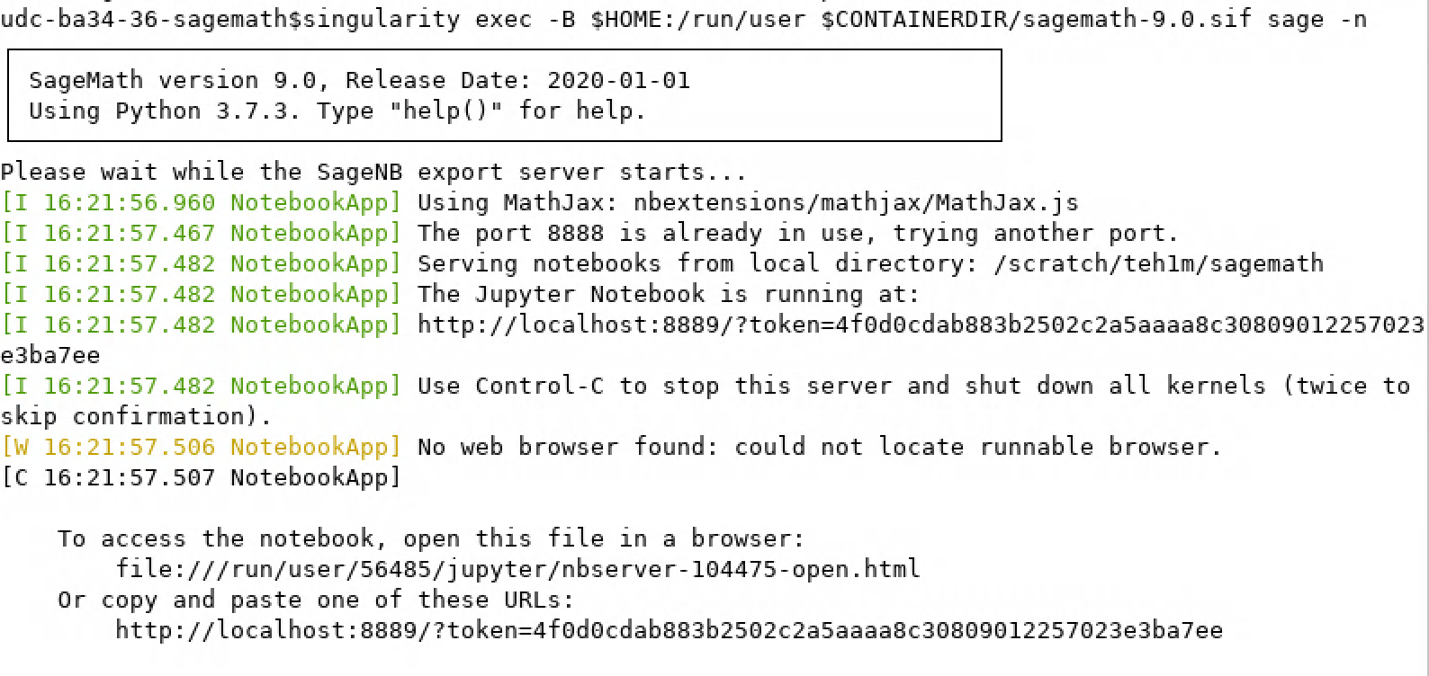 Read the on-screen instructions carefully to see how to start the Jupyter session in a browser.